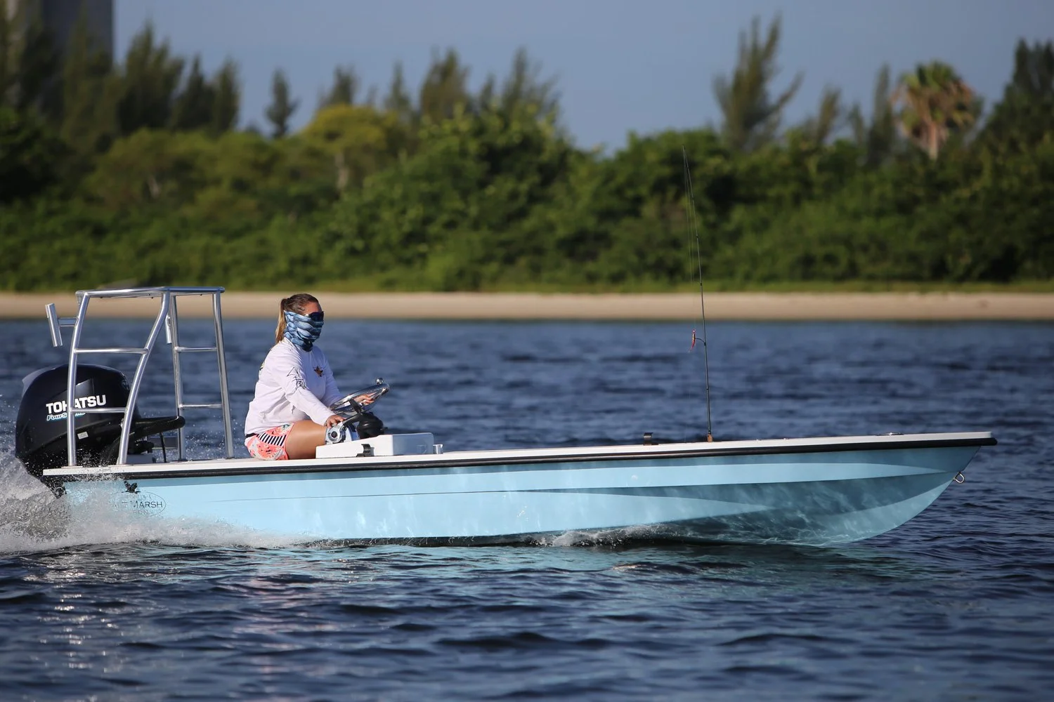 At one end of the spectrum, the Heron 16 can be built as a minimalist, no-liner, hose-and-go skiff with a portable fuel tank and a tiller 30 hp. At the other end, it can be spec’d out as a fully loaded center console inshore machine with molded liner, extensive dry storage, livewell, and a 60 hp delivering top speeds close to 40 mph.