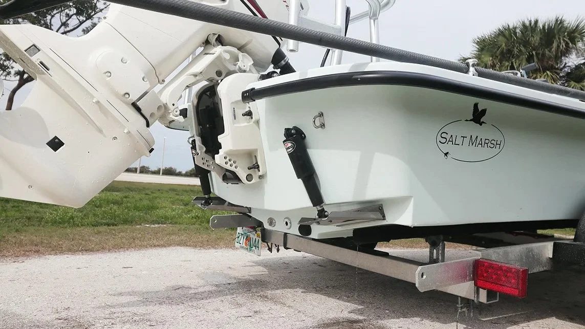 The result of two years of R&D, the Heron 18’s rounded transom design improves poling efficiency and handling by allowing water to slip more smoothly around the aft corners rather than creating turbulence. The drawback of rounded transoms — aside from being harder to build — is that they’re less efficient at planing speeds. The Heron 18 addresses that with an innovative step design that keeps the rounded surface clear of the water above displacement speeds.